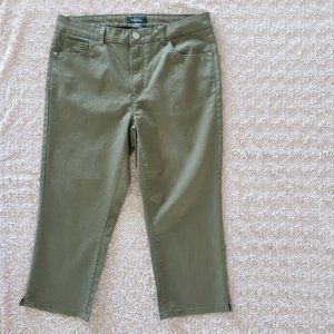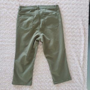 • Style: 5 pocket capris with zipper and button closure. There are side slits at the bottom of the pants.