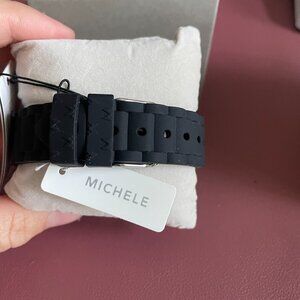 Black silicone strap (adjustable) with Michele “M” detailing