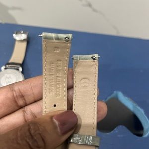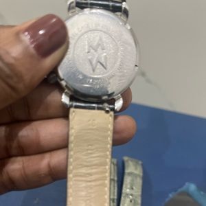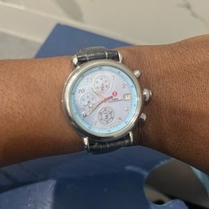 Michele Watch. Used. Shows some wear. Some scratches around the edges and on glass. Has working battery. Comes with extra watch band.