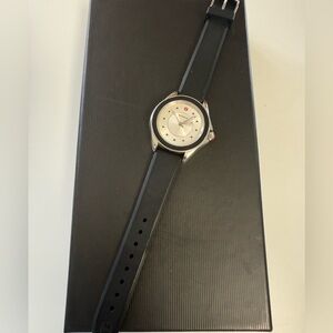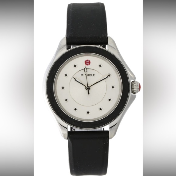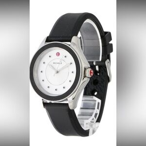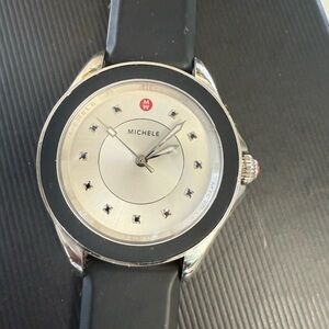 Michele watch with black silicone strap quartz movement silver dial with smooth bezel like new