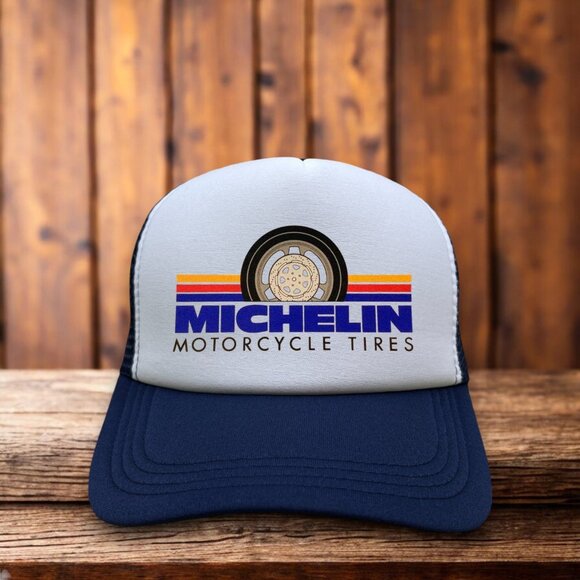 Michelin Motorcycle Tires Mens Trucker Hat Navy 70s Rare Logo Baseball Cap
