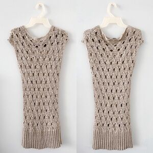 Michelle Belau Tan Luxury Weave Crochet Knit Lined Dress Size Small