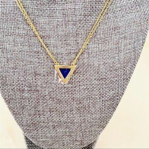 Michelle Campbell Tri Stone Inlay Pendant Necklace in Gold/Lapis