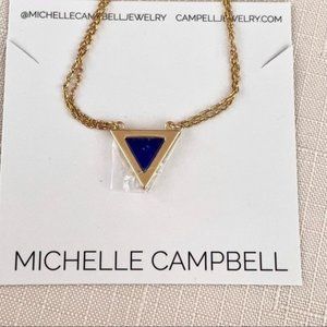 Michelle Campbell New Pendant Necklace 14K Gold Genuine Lapis Stone Inlay