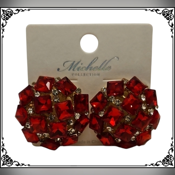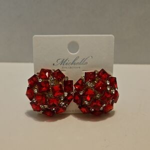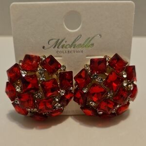 Gorgeous Michelle Collection red acrylic rhinestone earrings with clear rhinestone accents. NWT.