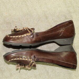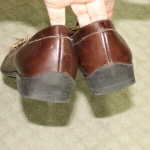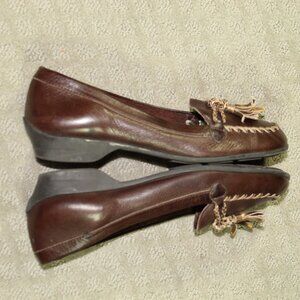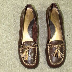 Michelle D Women's Sz 7.5M Brown with Gold Stitching and Braided Bit Loafer