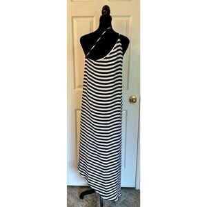 Michelle Mason 100% Silk Black & White Asymmetrical Shift Maxi Dress