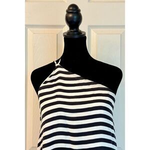Michelle Mason 100% Silk Black & White Asymmetrical Shift Maxi Dress Size 2