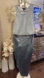 Michelle Mason Metallic Velvet Steel Blue Silt Hem Midi Skirt Elegant Skirt