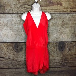 Michelle Mason Womens Size 2 Red Dress New Silk Lace Underlay Wrap