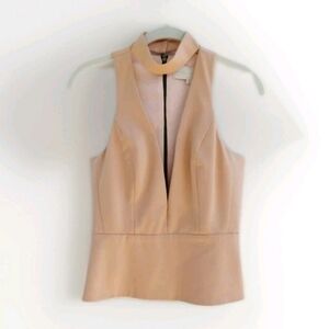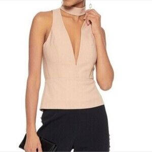 Michelle Mason Womens Size 2 Minimalist Night Out Nude Blush Choker Plunge Top