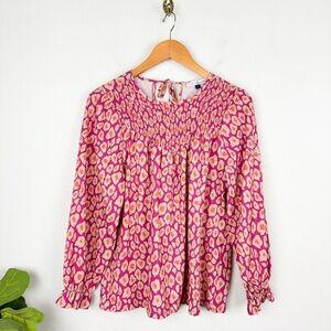 Michelle McDowell Pink Leopard Print Smocked Blouse Sz S