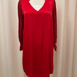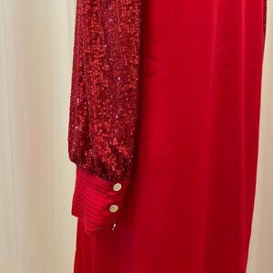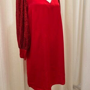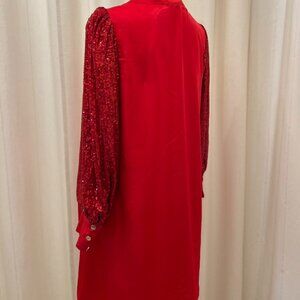 Michelle Mcdowell "Jordan Dress" in red with sequined balloons sleeves is to die for! The lightweight fabric and modest cut makes this dress both comfy and conventional for any environment!
