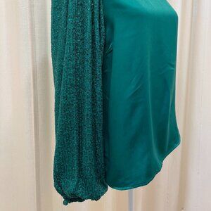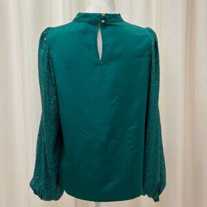 The lightweight fabric and sequined sleeves makes this blouse both comfy and convenient for any event!