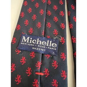 Michelle Men's Silk Blend Neck Tie Navy Blue with Red Design JL