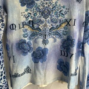Michelle Nicole Beaded Mixed Print Scoop Neck Sweater Size Large