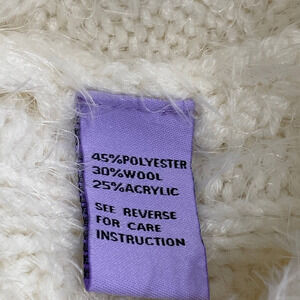 Michelle Nicole Ivory Cowl Neck Wool Blend Soft Eyelash Cable Knit Sweater Sz L