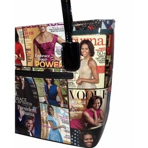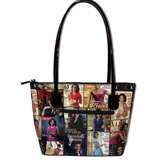 Michelle Obama First Lady Glossy Magazine Print Collage Handbag Purse Tote Vinyl