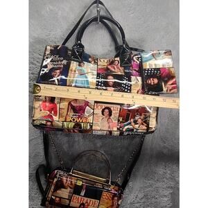 Michelle Obama Multi Colored Magazine Cover Collage 3 Piece Shoulder Bag Clutch