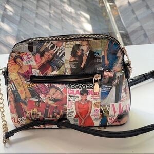 Michelle Obama Glossy Magazine Cover Satchel Style Purse w/Leather & Chain Strap