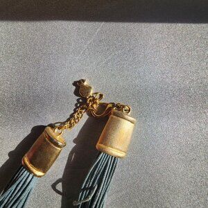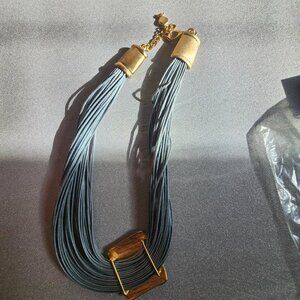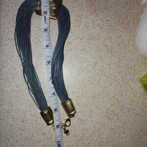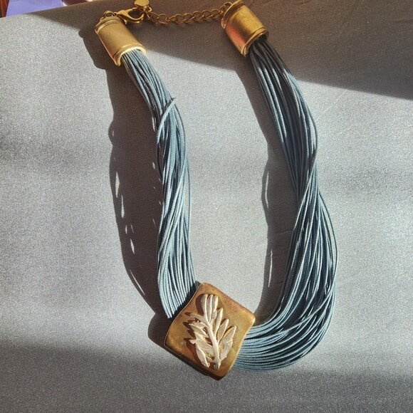 Michelle Rhodes Art multi-strand blue leather rod with metal leaf pendant. smoke free/pet friendly home