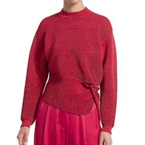 In excellent condition. No stains, tears, or flaws. Crewneck. Long sleeves. Pullover style. Dropped shoulders. Banded twist hem. Ribbed metallic finish. Beautiful sweater perfect for upcoming fall.