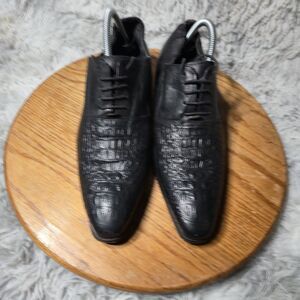 Michelline Mens Size 6/38 Black Crocodile Print Hand Made Lace Up Oxford Shoes