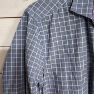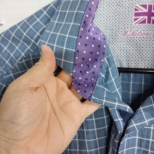 Michelsons London Men's Medium Blue with Purple Flip Cuff Button Down Shirt