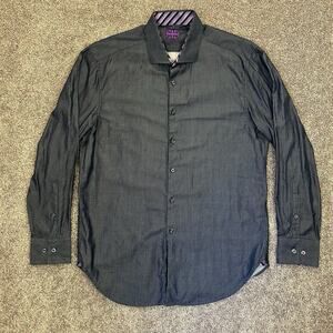 Michelsons of London Men’s Gray Cotton Button-Up Shirt Long Sleeves Size L