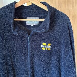 Michigan Football Sherpa Apparel Navy Blue Zip Up Teddy Terry Cloth Jacket XL C1