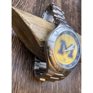 The Michigan Logo art Watch by LogoArt is a stylish and functional timepiece featuring the iconic Michigan logo. With a 42mm size, this watch is suitable for everyday wear and showcases your team spirit with its design. The watch also includes a date feature for added convenience. Powered by a new battery, this watch is guaranteed to keep accurate time and make a great addition to any fan's collection.