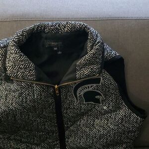Game Day Couture Michigan State size medium vest helmet state logo on chest black white green jewels 100% polyester gold color zipper game time game time