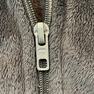 Victoria's Secret Pink Michigan State jacket in size small. Sequins Spartan logo on left front. Full zip dark gray, cozy, soft fleece with zipper pockets. Victoria Secrets x 5th & Ocean.