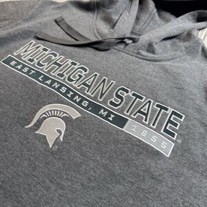 Michigan State Spartans Hoodie Men’s L Gray Fleece Spellout Logo MSU New