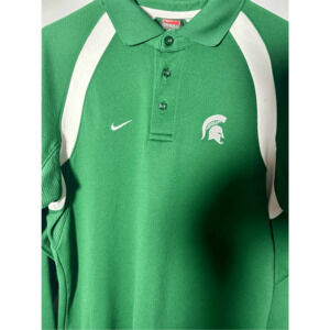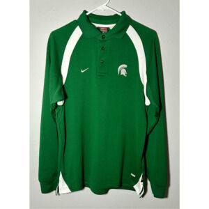 Michigan State Spartans Nike Team Dri-fit Green Long Sleeve Polo Shirt Sz Small.