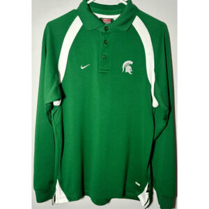 Michigan State Spartans Nike Team Dri-fit Green Long Sleeve Polo Shirt Sz Small