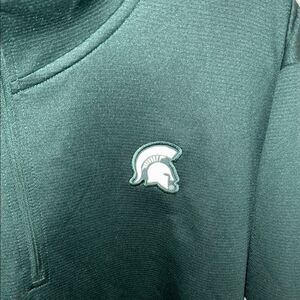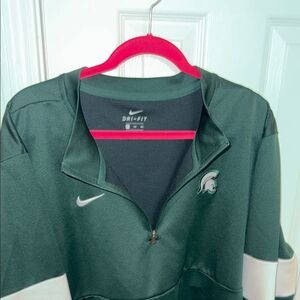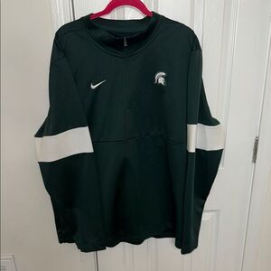 Stylish Nike pullover with a quarter-zip design. Dark green with white stripe accents. Features logo on the chest. No rips tears or holes , zipper fully functional . Nike stitches on jacket no runs in fabric. MSU Tank top & t shirt also in 2XL , Hat & NWT shades.