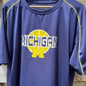 Michigan Wolverines Basketball Majestic Blue Yellow Athletic shirt Size XL