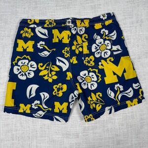 Michigan Wolverines Men Navy M Floral Volley Trunks Wes Willy College Beach Fair
