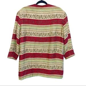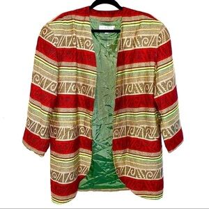 Michii Moon for Sanyo art deco tribal ethnic striped blazer jacket. The size is marked as 8, but it likely fits closer to a 10, 12, or Large. Please refer to the measurements.