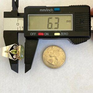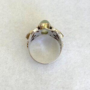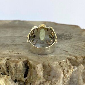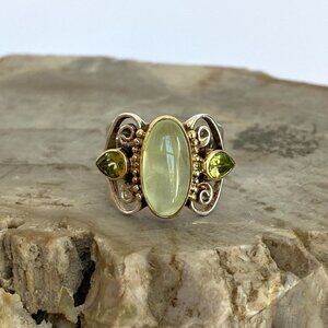 Michou Sterling Silver 925 Vermeil Oval Prehnite Peridot Scrollwork Ring Sz 6.25