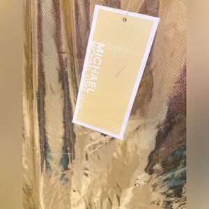🎉Women’s Michael Kors Petite Metallic short sleeve color: Gold 🎊Size: petite Medium , Round Neck, 100% polyester Fashion T-Shirt 🎊 Beautiful and Elegant Great for any occasion 🛍️ New with tags 🎀
