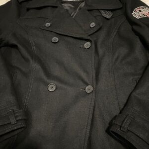 Mickey 71 Wool blend pea coat jacket size L EUC big embroidered logo on back