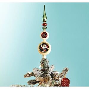 Mickey And Minnie Disney Finial Glass Tree Topper Christmas 12" Santa