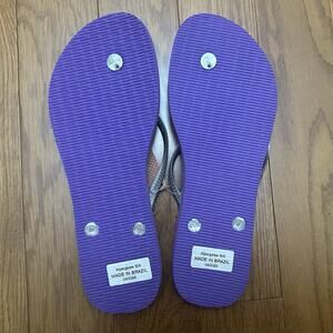These Mickey and Minnie Mouse Disney100 Flip Flops by Havaianas in size 11/12 are a stylish and fun addition to any woman's wardrobe. The purple color and Minnie Mouse character detailing make them a playful choice for the beach or casual outings. Made with durable rubber, these flip flops are not only fashionable but also comfortable for all-day wear. Perfect for Disney fans looking to add a touch of nostalgia to their shoe collection.