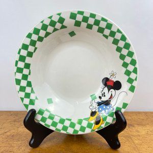 Rare and collectible set of Minnie Mouse bowl and plate by Gabbay! The bowl measures 8" diameter x 1.75" tall and the plate has a 7.75" diameter. They are in very good preowned condition, with no utensil marks and minimal signs of use. a few of the pieces has some some manufacturing and glazing errors, and we have included a close up of an example of these errors.