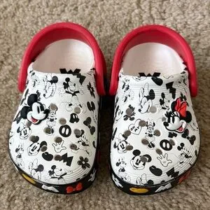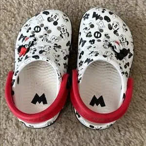Mickey mouse minnie mouse disney white black red crocs toddler Sz 6 Good preowned condition