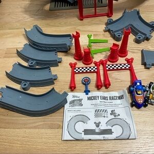Mickey Ears Raceway W/ 3 Diecast Cars Goofy Mickey Mouse Donald Duck Play Set
