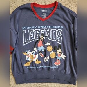 Mickey & Friends Navy and Red V Neck Basletball Athletic Pullover Size 1X