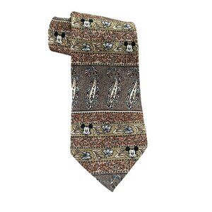 Mickey Inc Disney Brown Patterned Mickey Mouse 100% Silk Tie